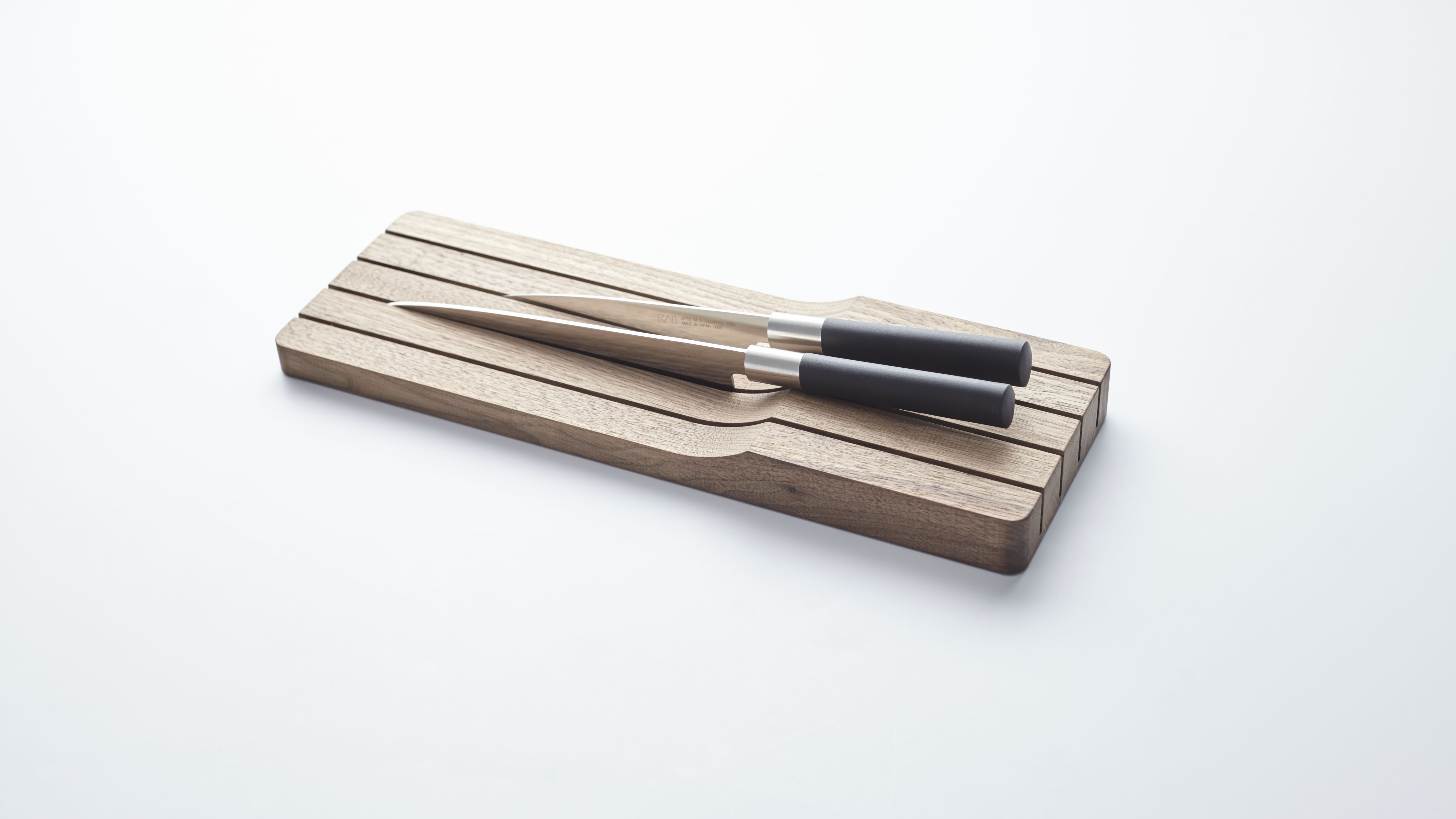 The tools you need to create the ideal organizational system for you are designed into the system. Our wood and stainless-steel drawer organization is flexible and modular to keep your utensils neat and right where you want them. Designed on a grid, you can change the layout according to your own taste. Components can also be used outside of the drawers for serving or storage. Cleaning is a cinch. Simply lift out the silicone liner, and throw the stainless bins and mats in the dishwasher. The bins are made from the offcuts of our sinks, making them highly durable while reducing waste.