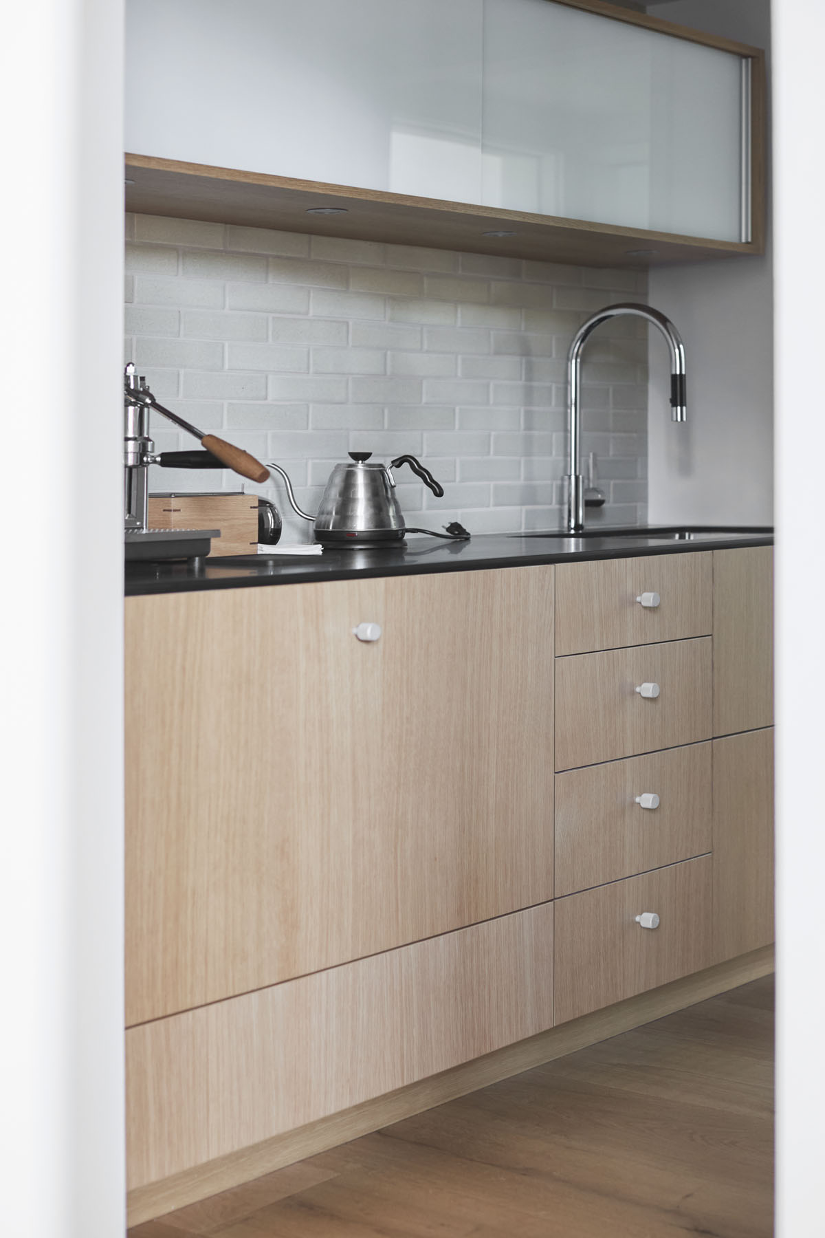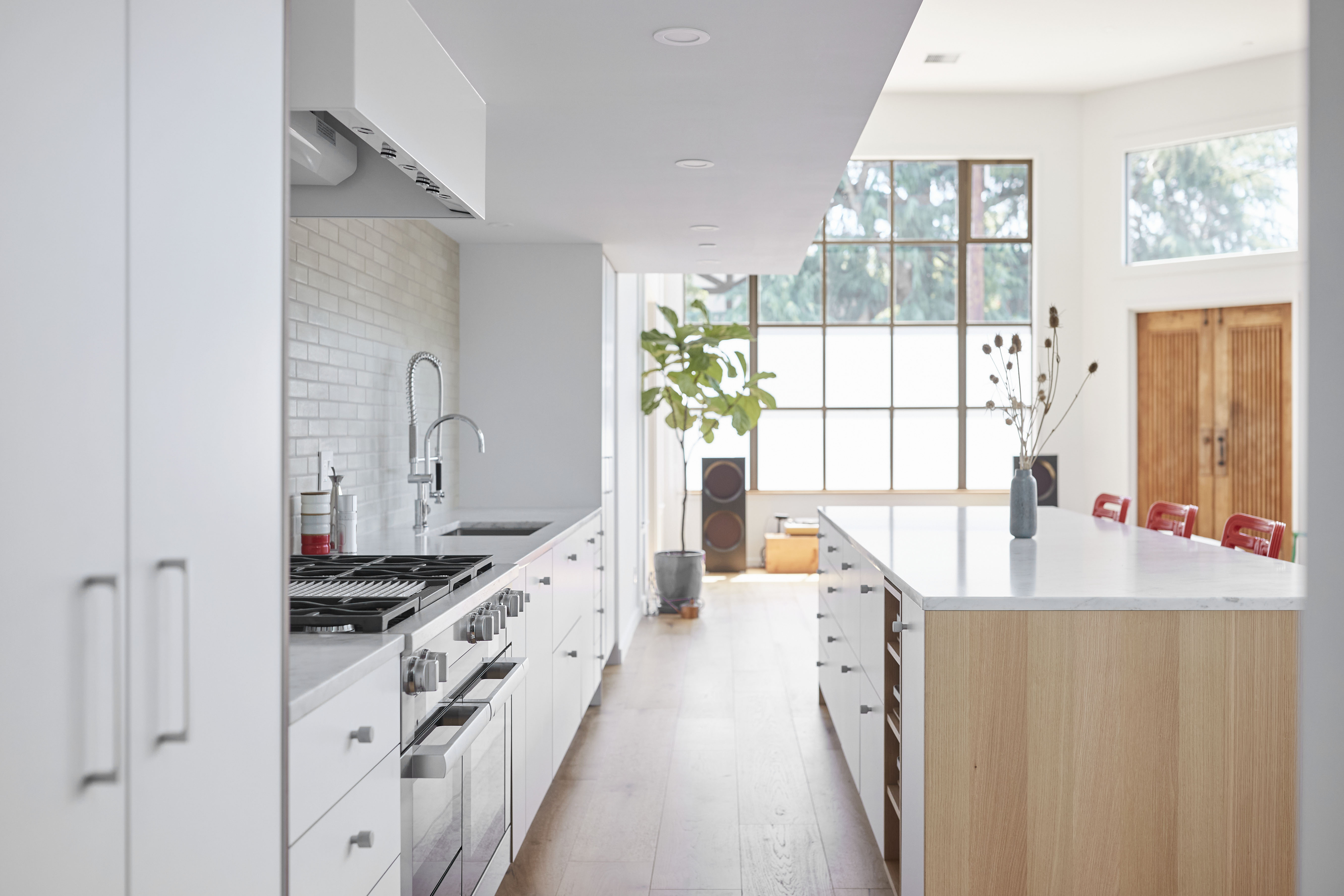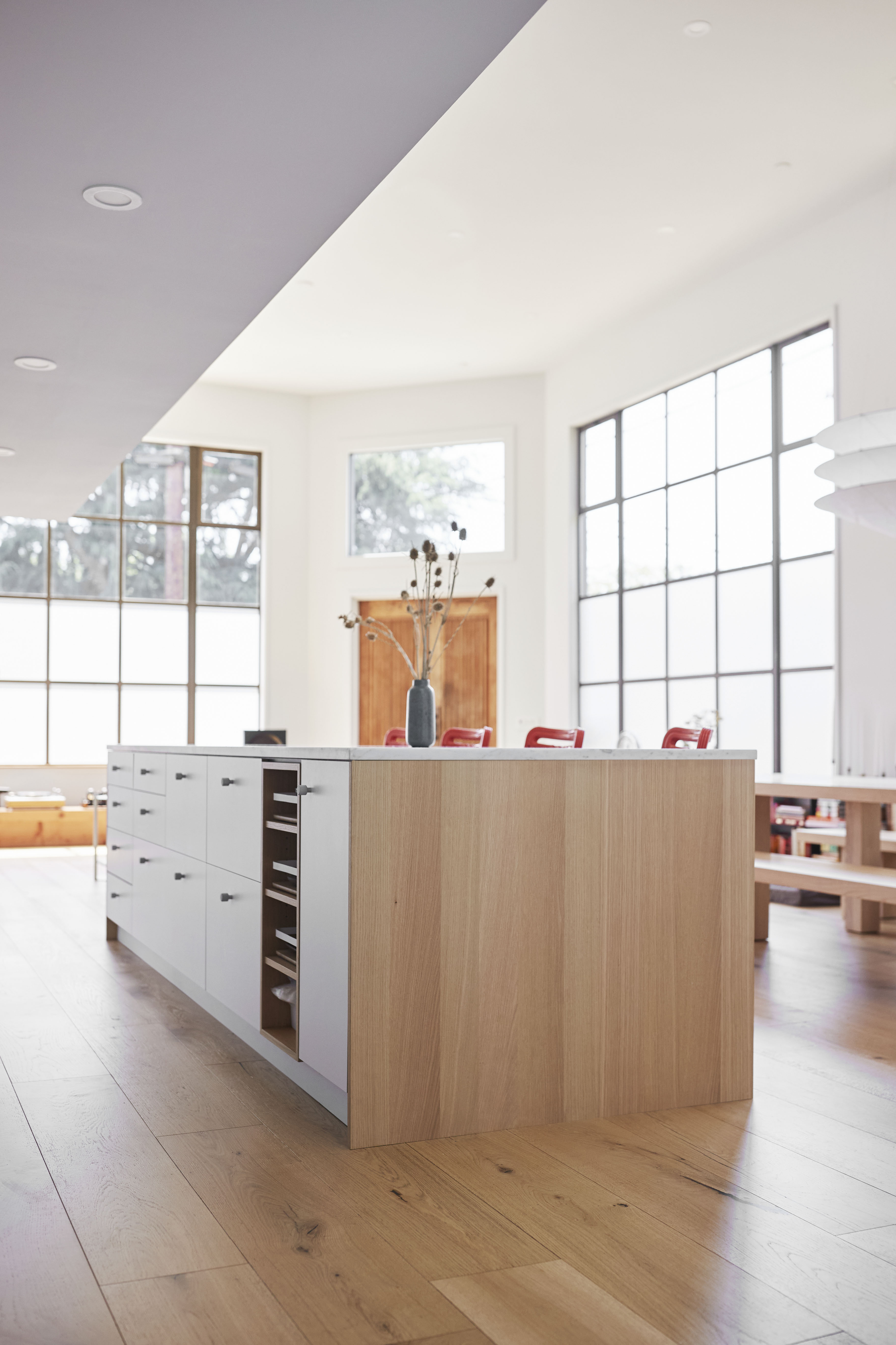Set along a street that traces the path of a former rail line, this 1924 building once served as San Anselmo's primary neighborhood market. Later occupied by the company behind the first fiber-optic cables laid beneath the Golden Gate Bridge, the building has since been reimagined as a residence by trained architect and product specialist Will Meeker and his wife, in close collaboration with architect Michael Perkins. Meeker—whose residential history includes several unconventional living environments, among them a refrigerated 1906 warehouse in New York City—approached the project with a practiced ease. Rather than resist the building's commercial past, the couple refined it: frosted glazing, upgraded insulation, and a considered interior renovation transformed the former corner store into a private home with an inventive spirit.